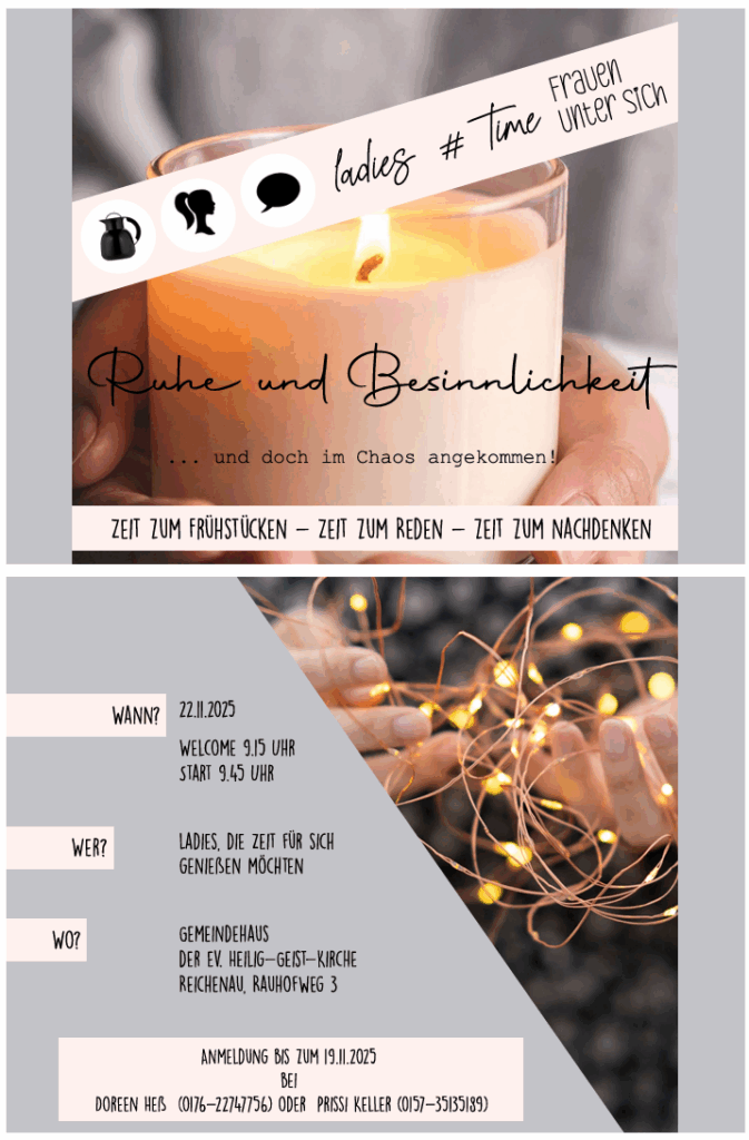 Der Ruhestand unserer Pfarrerin und die bevorstehende Fusion mit der ev. Kirchengemeinde in Allensbach zur „Ev. Kirchengemeinde am Gnadensee“ zum 01. Januar 2026 bedeuten auch für uns Mitarbeitende innerhalb der Kirchengemeinde einige Umstellungen. Wir möchten Sie freundlich um Nachsicht bitten, sollte es momentan an der einen oder anderen Stelle zu ungewohnten Situationen kommen und vielleicht nicht alles ganz reibungslos laufen.